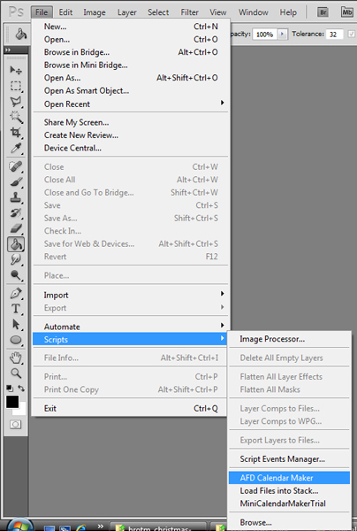 - Navigate to file>scripts and click on AFD Calendar Maker or mini calendar maker trial to run the script.