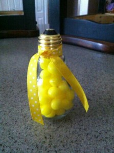 I do not have experience with any of these companies except for Hobby Lobby, I found them doing a google search for light blub candy jars. If you can’t find the light bulb jars, you could use any small, clear jar and fill it with candy.