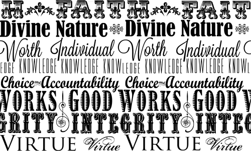 - YW Values Subway Art fabric: All eight YW values in pink and red tones on a warm brown background.