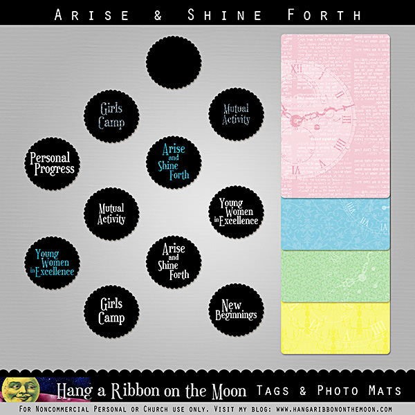 All you need is graphic design software like Photoshop, Photoshop Elements, Paint Shop Pro, Gimp or even Word–any program that will work with .jpeg and .png files. If you’re not that technical, you can simply print out the papers and elements and use them like you would store-bought items on paper-crafting projects and scrapbook pages. Best of all, I’ve created my Arise & Shine Forth kit to coordinate perfectly with all of my other 2012 Mutual Theme printables so you can make your own custom projects to go with mine!