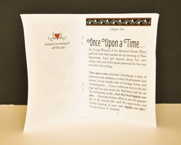 Looking for an idea for New Beginnings or Young Women in Excellence or even Activity Days? Here’s an idea that we used for New Beginnings this year. We created a beautiful evening centered around Elder Dieter F. Uchtdorf’s talk and book (get the ebook for free right now for Kindle!) Your Happily Ever After.