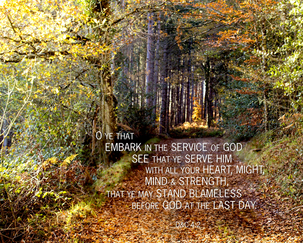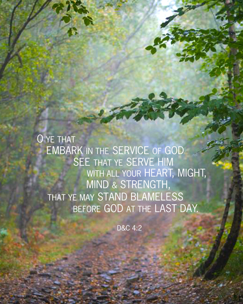 O ye that embark in the service of God, see that ye serve him with all your heart, might, mind and strength, that ye may stand blameless before God at the last day.