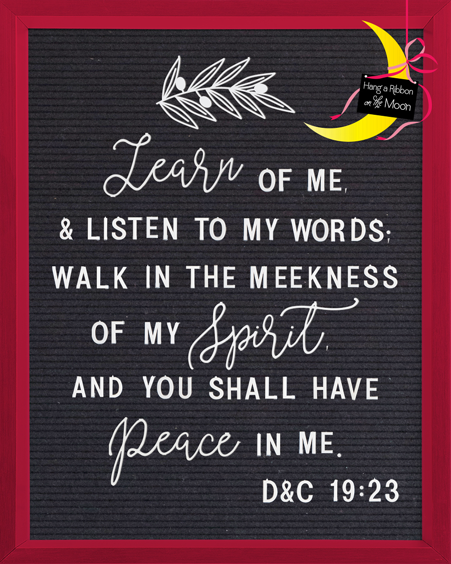“Learn of me, and listen to my words; walk in the meekness of my Spirit, and you shall have peace in me.” Doctrine & Covenants 19:23