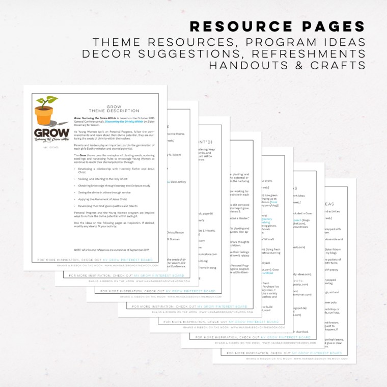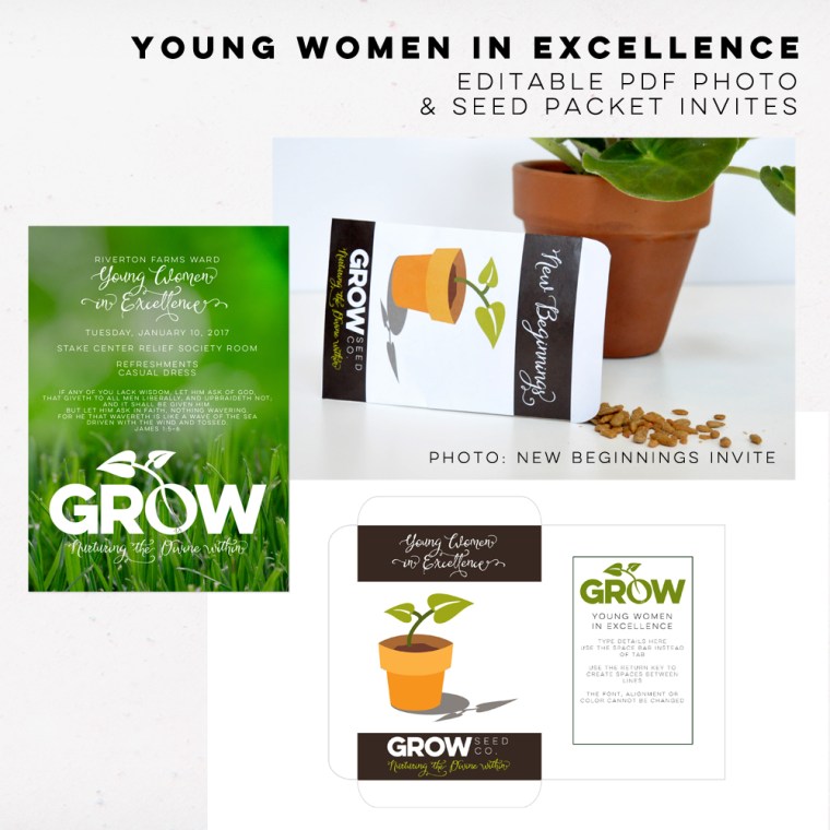 My Grow New Beginnings, Young Women in Excellence and Girls Camp Packs are jammed with printables including: