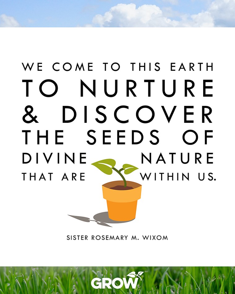 Grow: Nurturing the Divine Within is based on the October 2015 General Conference talk, Discovering the Divinity Within by Sister Rosemary M. Wixom.