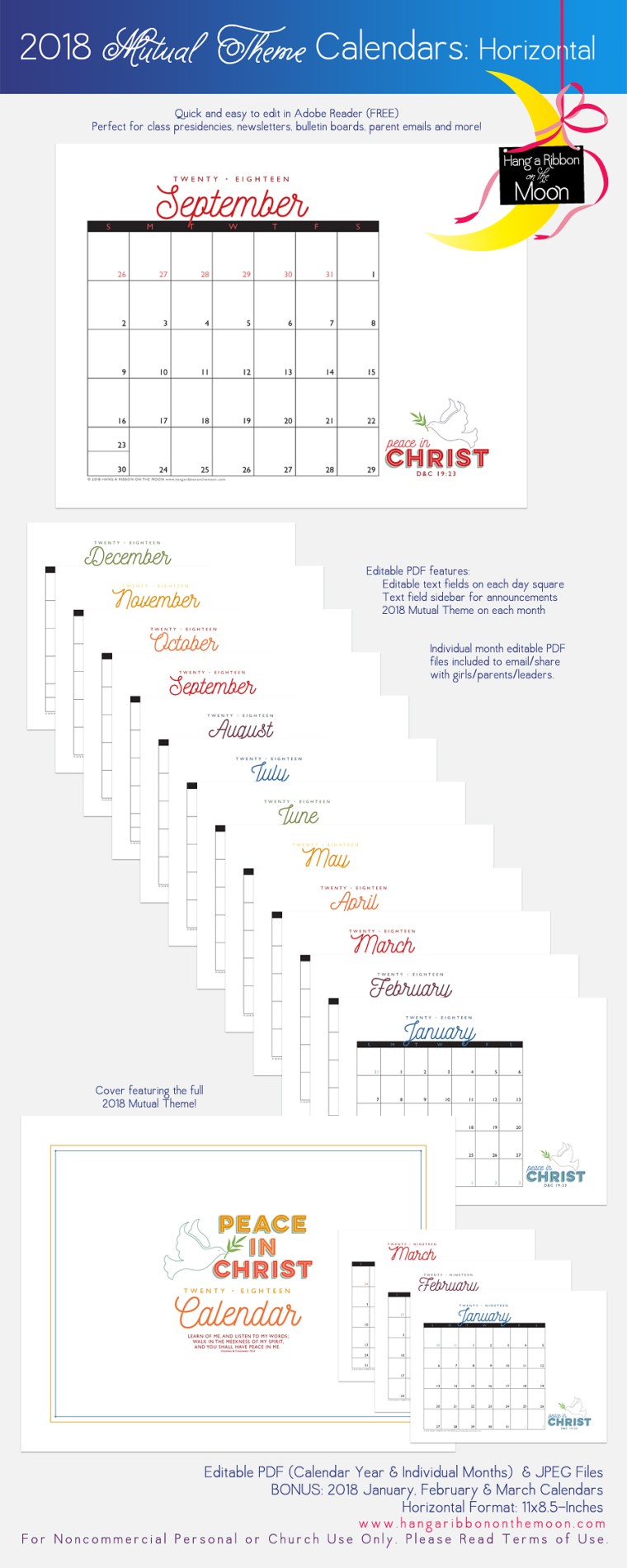 2018 Mutual Theme Calendars: Editable PDF & JPEG [Horizontal]