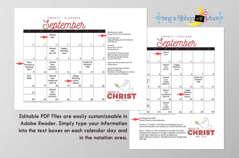 2. Thank you so much for doing these again! They are my favorite calendars to use for our young women! I am so happy you created individual files this time also. So much easier to email out to our YW board. Thank you! Thank you! Thank you! 🙂