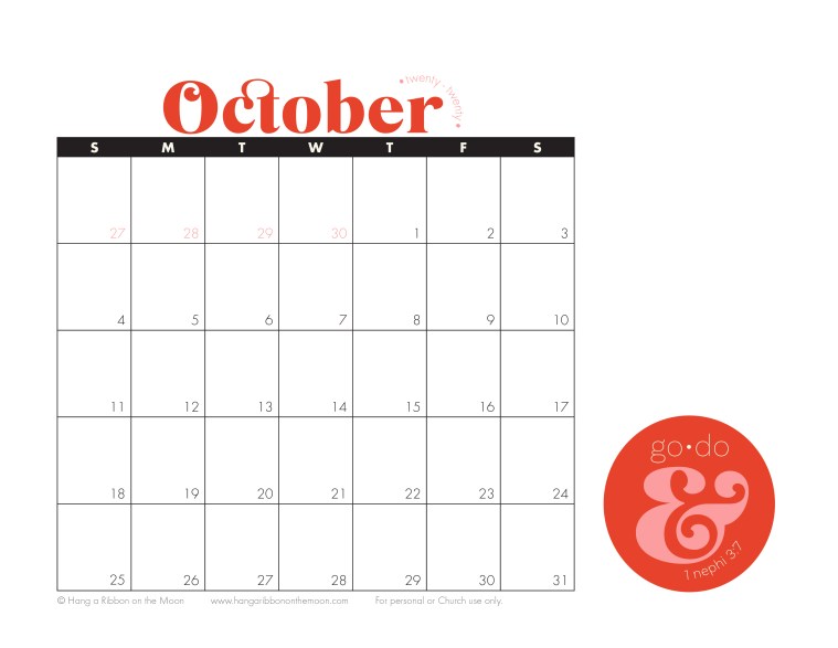 (You MAY print out/copy paper copies of these calendars to give out. You CAN share the PDF/Edited JPEG files electronically with those you serve in your callings. You MAY not share the electronic files with anyone else.)