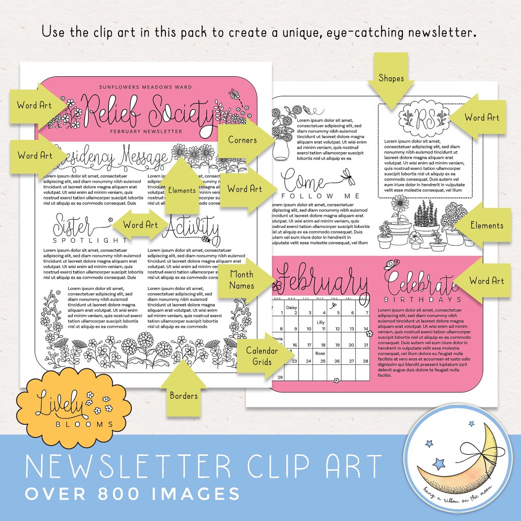 Check out this new HUGE 868-piece pack in my Etsy shop here: https://hangaribbononthemoon.etsy.com/listing/1769233951/newsletter-clip-art-pack-for-lds-relief