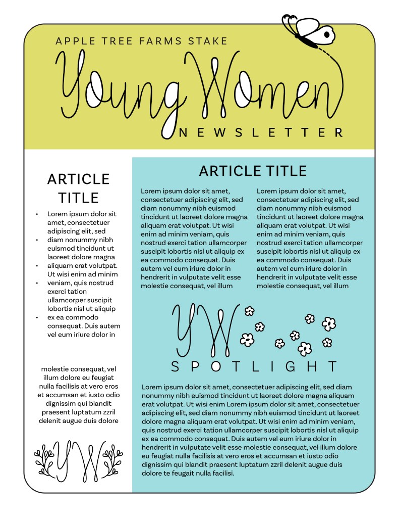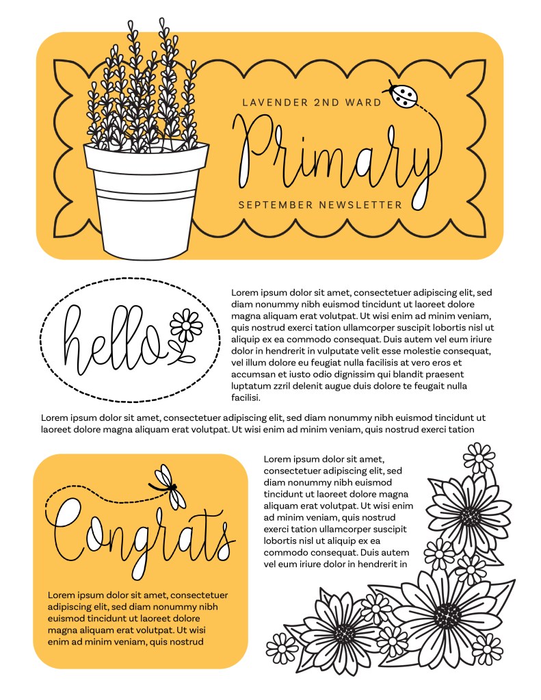 - FIfteen pieces of word art (PNG) in white fill and no fill (including masthead artwork for Relief Society, Young Women, Primary and generic Newsletters)
