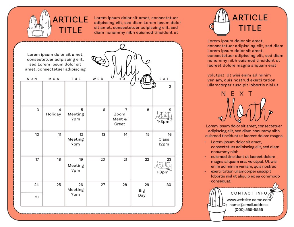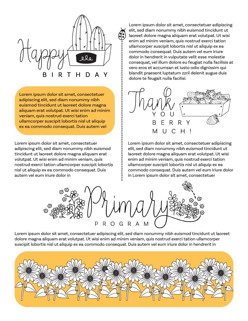Design your newsletter in any software that uses PNG and/or SVG files including Microsoft Word, Adobe Photoshop, Canva, Gimp & Google Docs. Then, use this clip art pack to add fun details to your creation.
