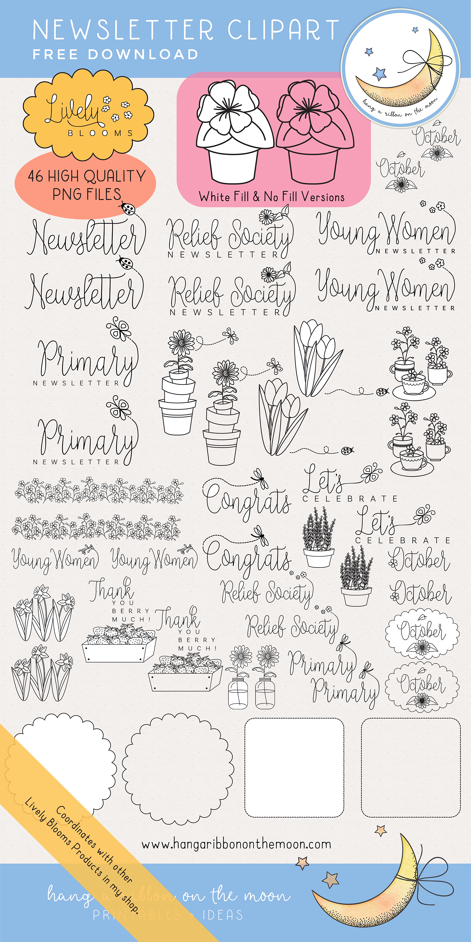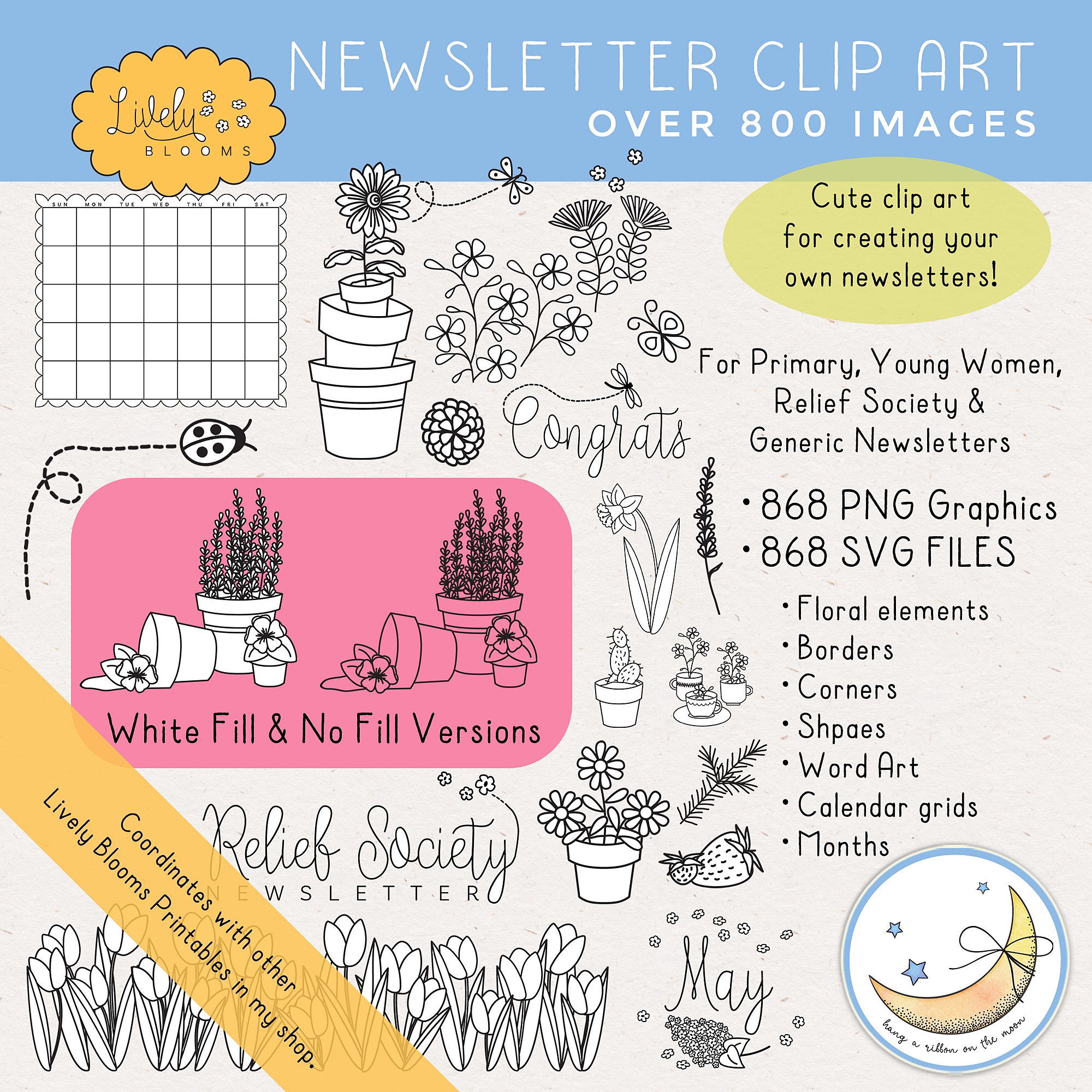 Check out this new HUGE 868-piece pack in my Etsy shop here: https://hangaribbononthemoon.etsy.com/listing/1769233951/newsletter-clip-art-pack-for-lds-relief
