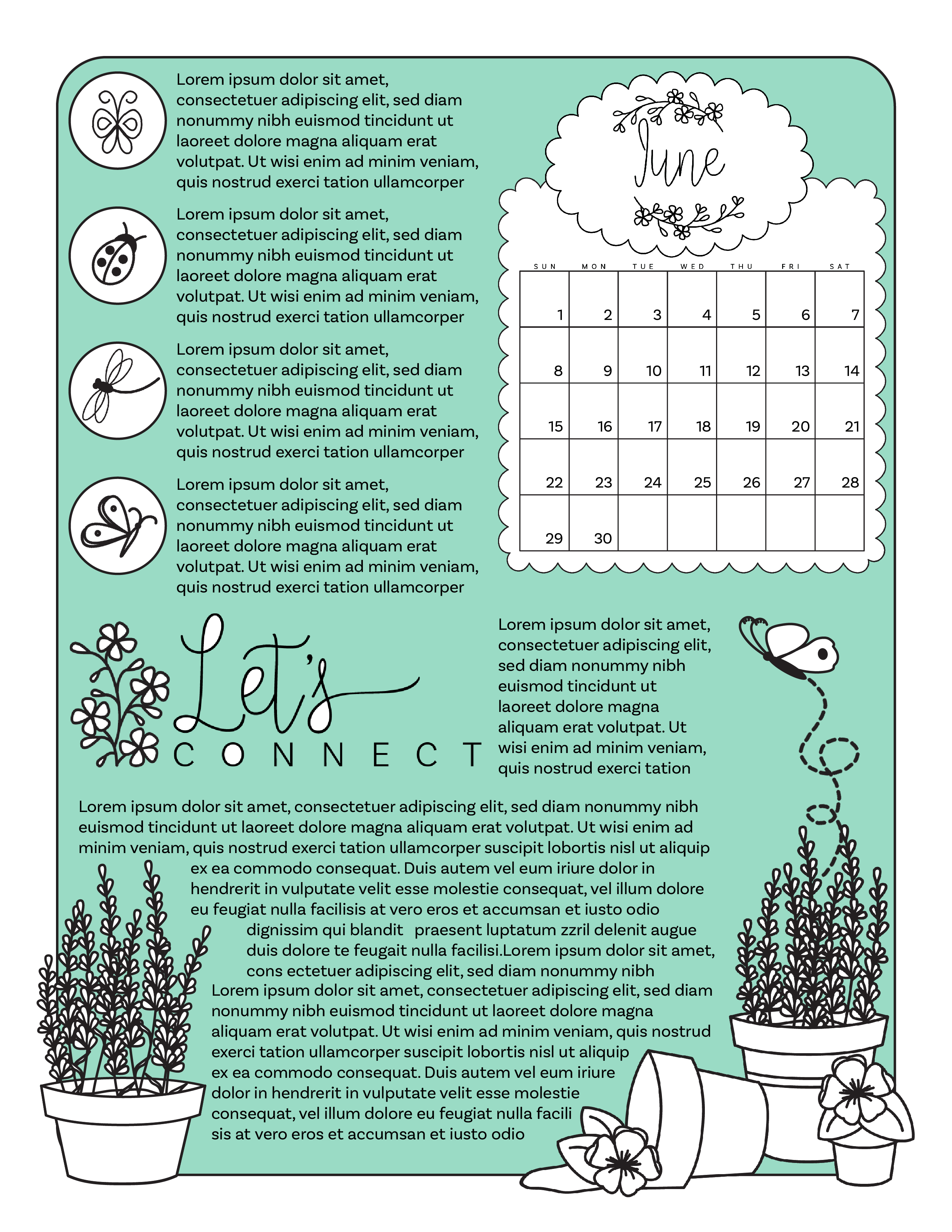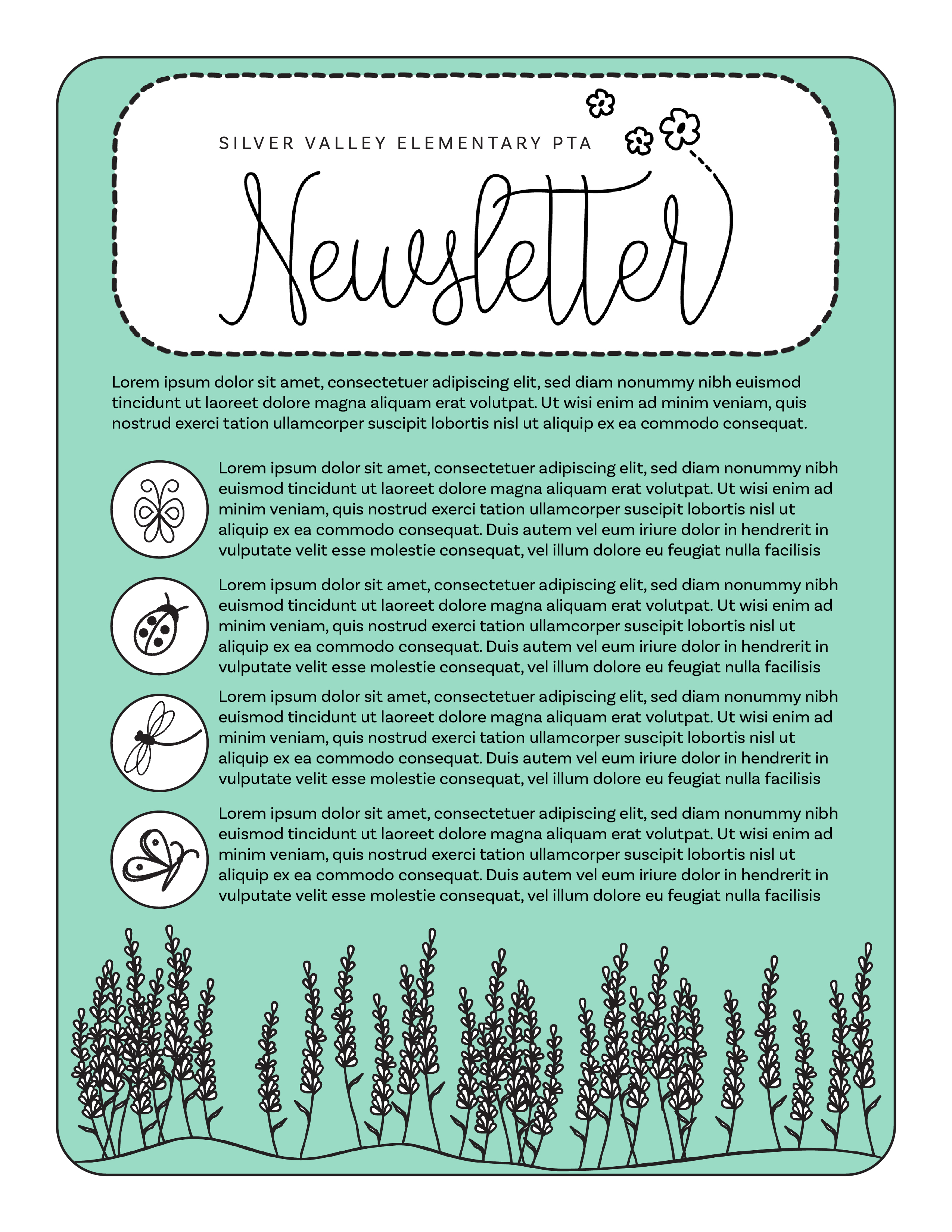 Design your newsletter in any software that uses PNG and/or SVG files including Microsoft Word, Adobe Photoshop, Canva, Gimp & Google Docs. Then, use this clip art pack to add fun details to your creation.