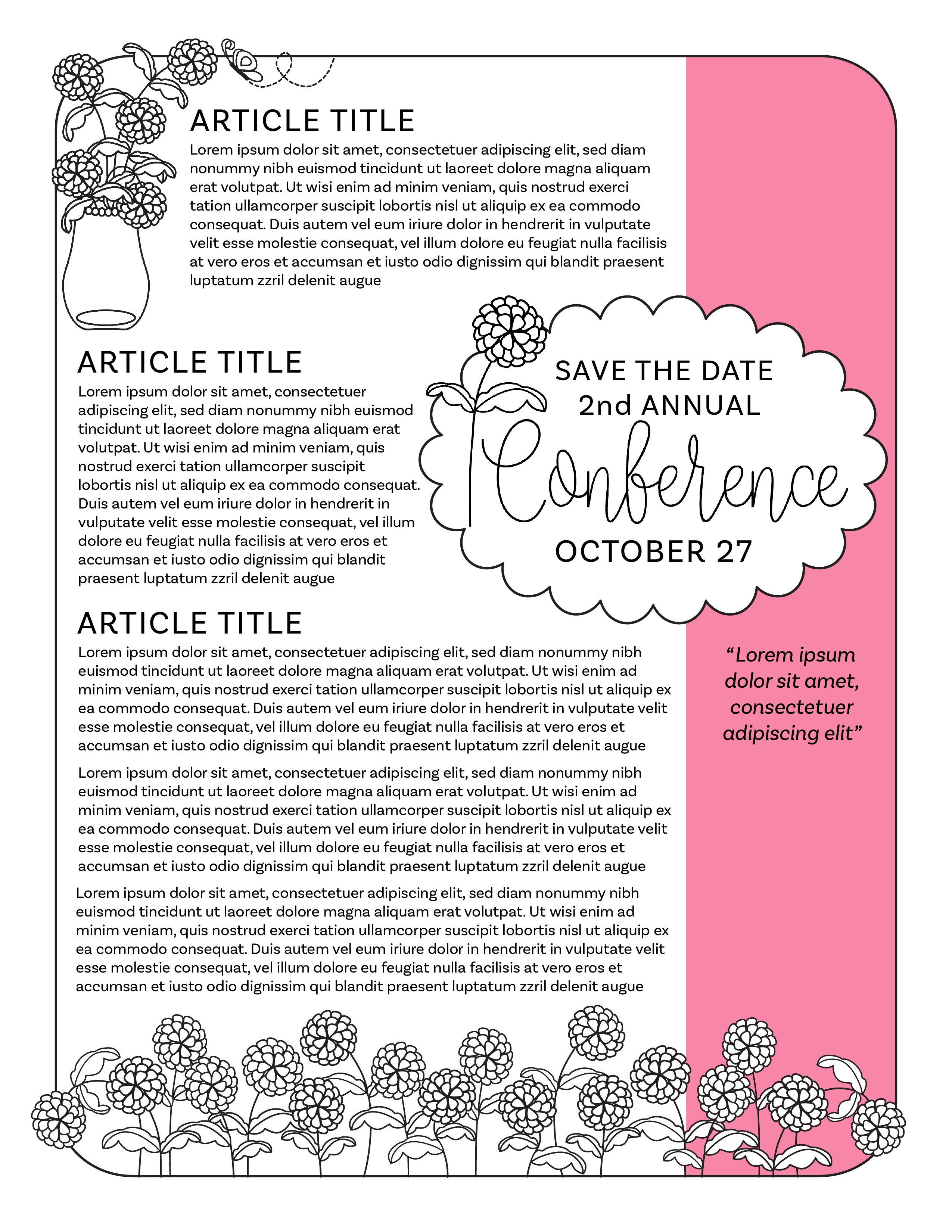 Use the newsletter header artwork in your masthead. Make a calendar with the calendar grids, elements, and months. Enhance article content with word art. Add decorative borders & corners to your design for interest. Be creative!