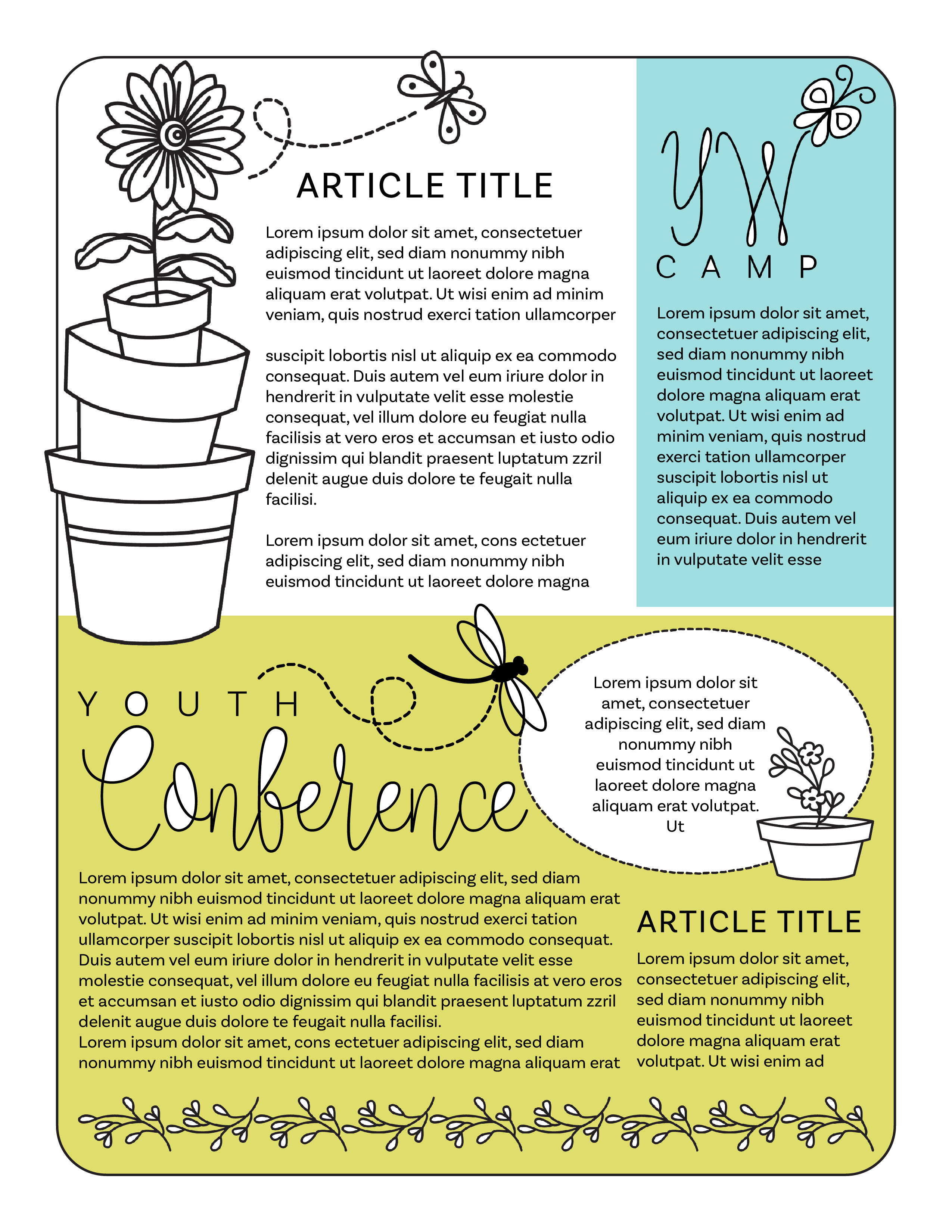 - FIfteen pieces of word art (PNG) in white fill and no fill (including masthead artwork for Relief Society, Young Women, Primary and generic Newsletters)