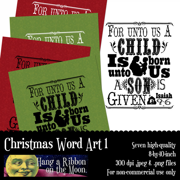 The scripture I used always reminds me of Handel’s Messiah and while I was making the word art, I couldn’t help but sing that beautiful piece of music in my mind. Whether you use my word art on your holiday greetings, print, frame and give to a friend or use for a scrapbook page or wall decoration, I hope it brings the true meaning of Christmas to your mind.