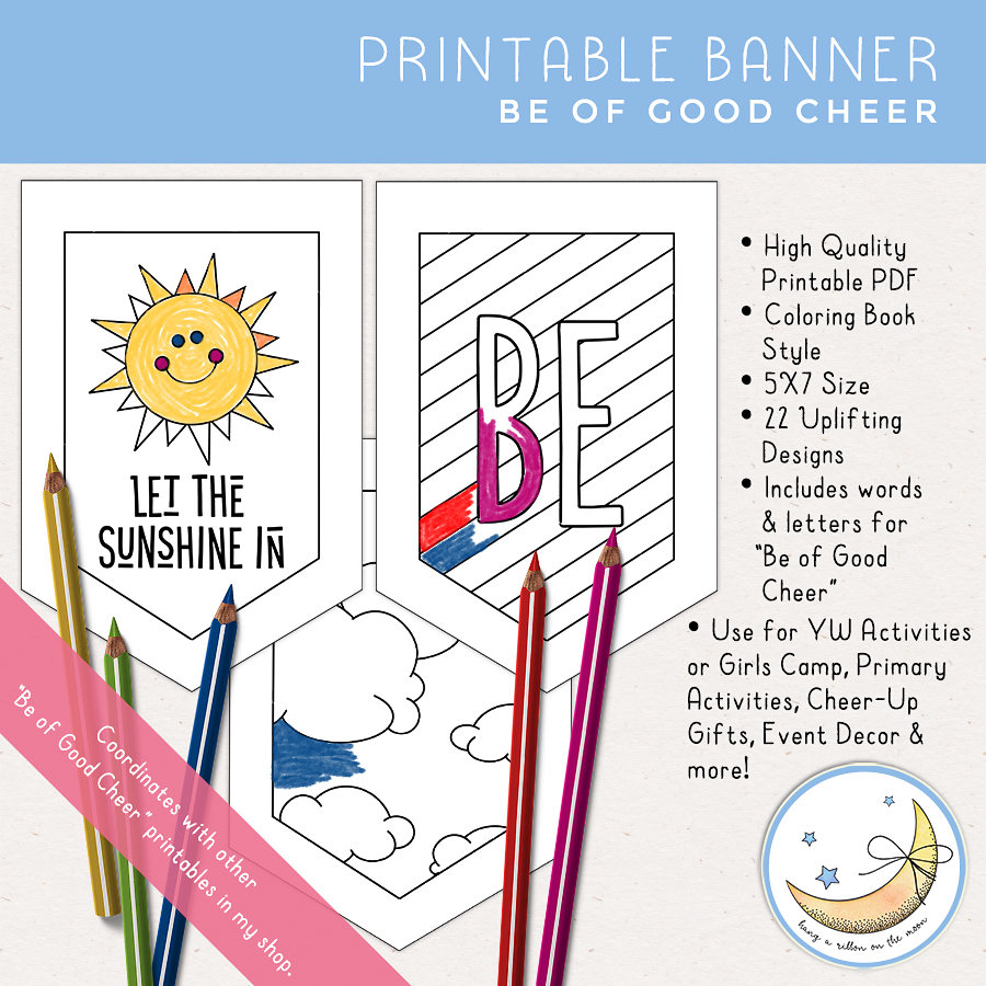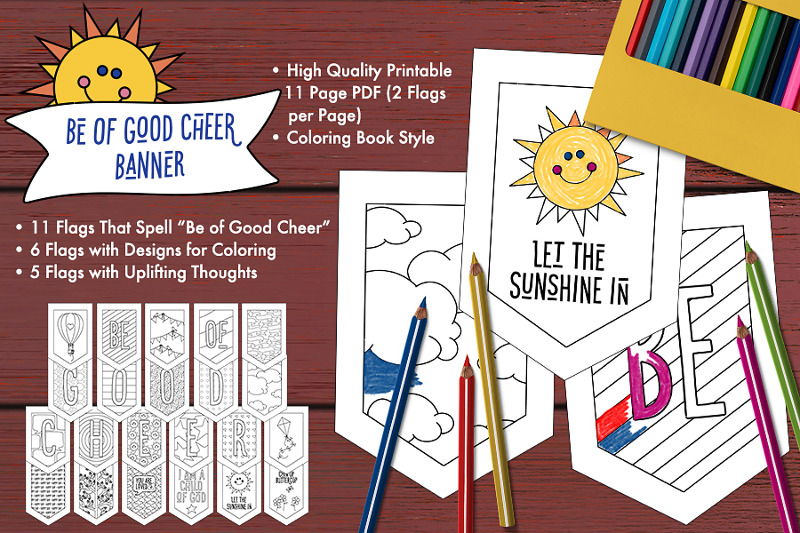 Need a way to cheer up a friend or family member? Looking for a way to help your children serve during the current crisis? Today, I’m giving away a fun project you can use to accomplish both tasks: a coloring-book style “Be of Good Cheer” banner.