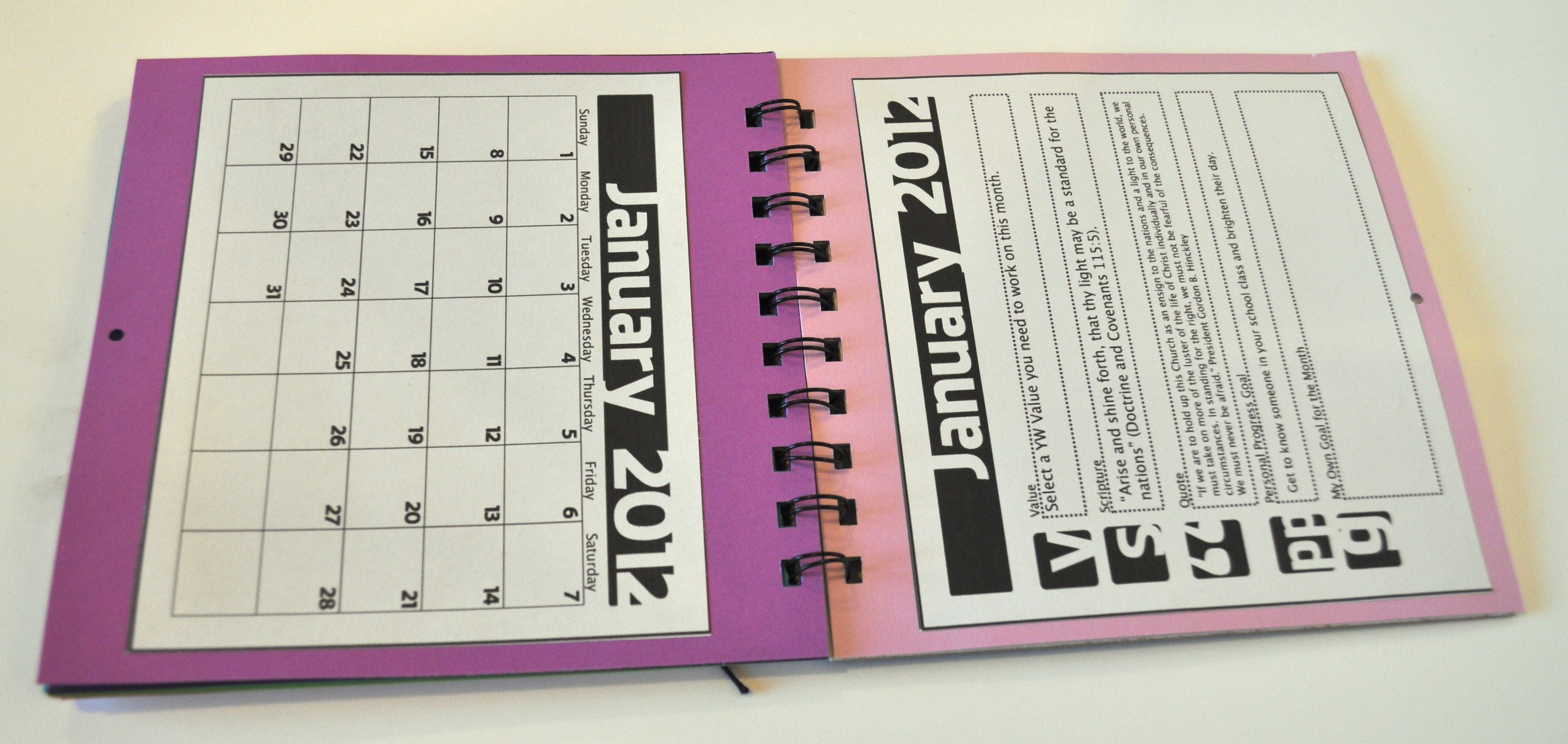 2012 LDS Young Women’s Personal Progress Calendar