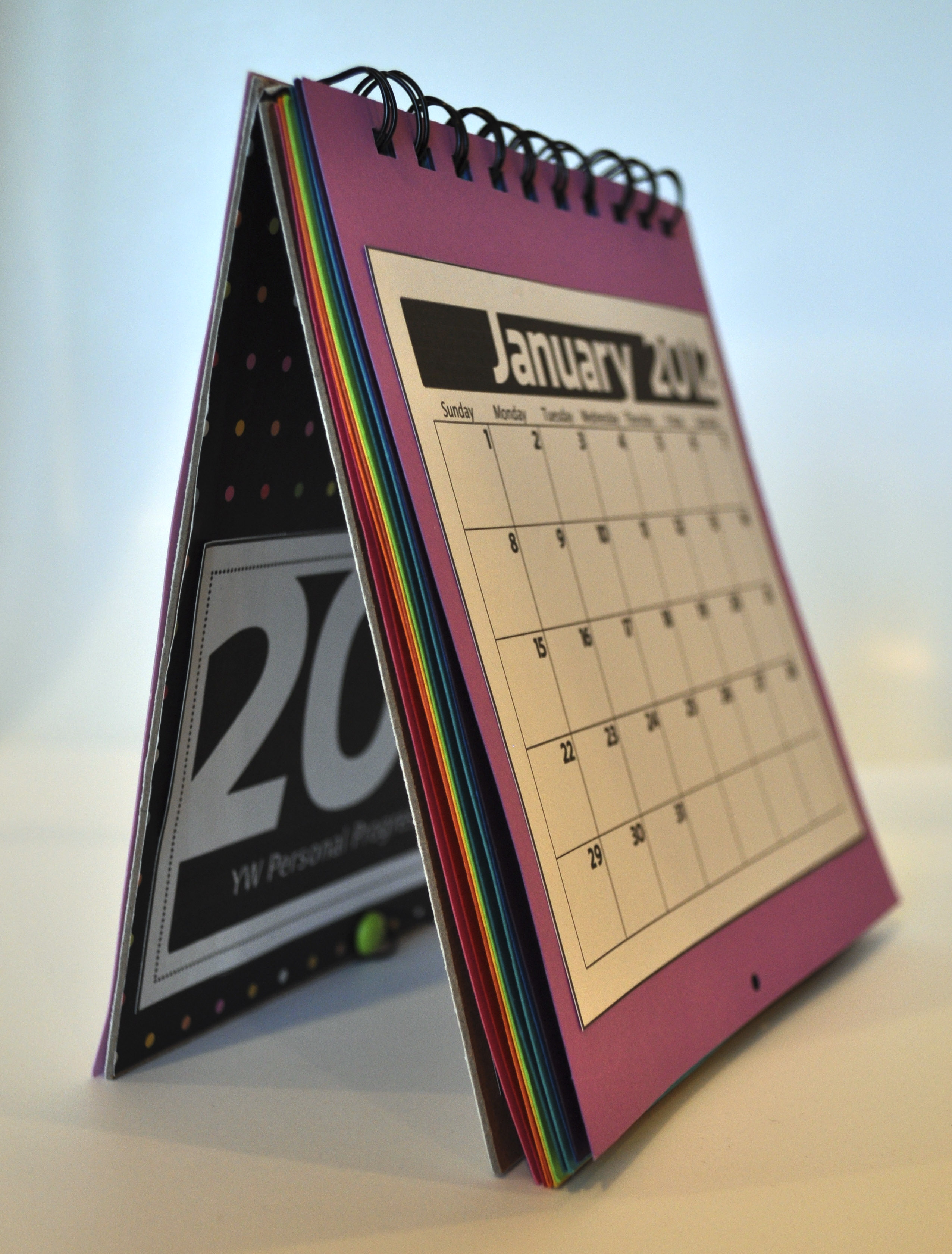 Here is a great project to do for a YW activity that will inspire your Beehives, Mia Maids and Laurels the whole year through:  a 2012 Personal Progress calendar!  We made these at a recent Young Women’s Personal Progress activity and I thought I would share this inexpensive project with you.